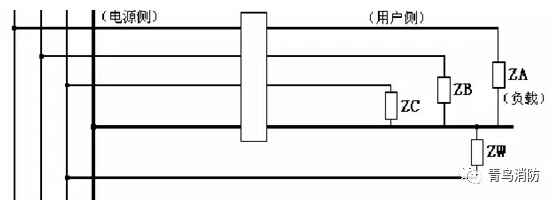 4)互感器用戶側(cè)零線有負(fù)載接到互感器前的相線,即保護(hù)區(qū)域以外的其他線路與用戶側(cè)“共零”。這種為了敷設(shè)方便的不規(guī)范線路安裝非常常見。哪怕只是走廊或強(qiáng)電電井里的幾個(gè)燈泡,就足以造成探測(cè)器報(bào)警(一個(gè)25W的燈泡產(chǎn)生的電流在200mA左右)。