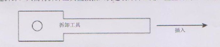 -如要快速拆卸,只需將拆卸工具直接插入快速裝卸開(kāi)口處,直至聽(tīng)到“咔嚓”聲;