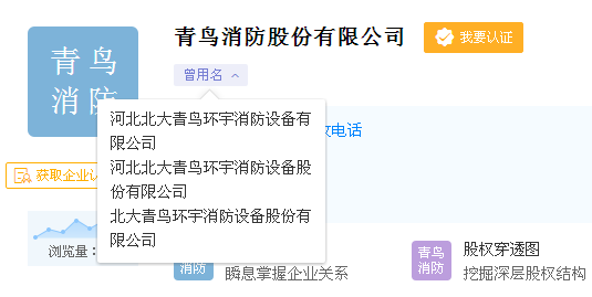 根據(jù)天眼查資料顯示,也已經(jīng)顯示“青鳥消防股份有限公司”作為公司名稱。使用過(guò)如下曾用名: