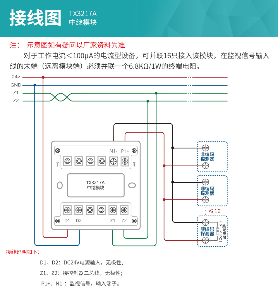 泰和安TX3217A中繼模塊接線圖